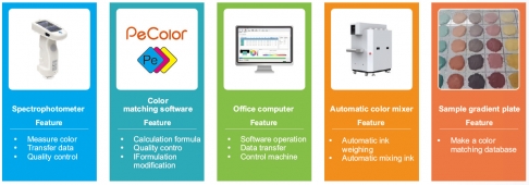 Программное обеспечение PeColor — оптимальное решение в области колеровки и расчета рецептур, подходящее для различных отраслей промышленности: производства пластиков, лакокрасочных материалов, керамики, различных типов покрытий, пищевой промышленности и других.