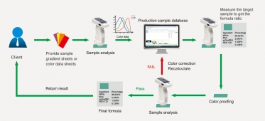 Создавайте любые рецептуры под существующие технологические условия по образцам, предоставленным заказчиками. Оператор сможет быстро и точно выбрать оптимизированную рецептуру, учитывающую такие факторы, как качество подбора цвета, стоимость и метамеризм.